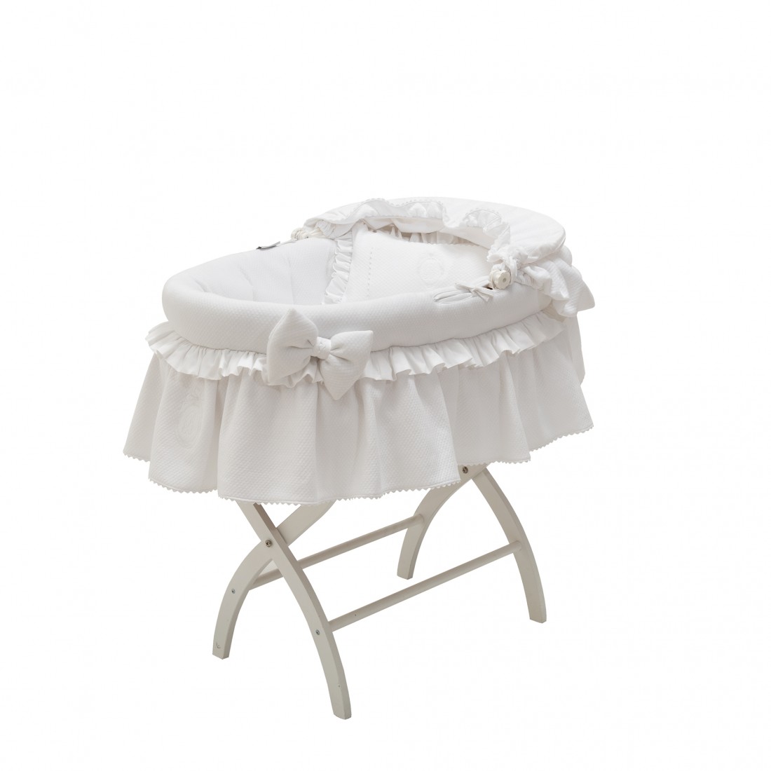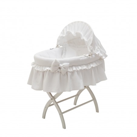 Rivestimento e materasso 100% cotone - prodotto da Cocon d'amour nei suoi laboratori in EuropaCarcassa in vimini naturale e manici in pelle - prodotti dal nostro partner europeo