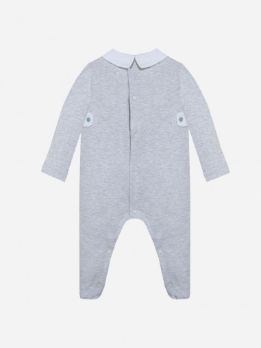 Realizzato in bianco e grigio con una piccola finitura blu, questo pigiama sarà adatto sia al piccolo principe che alla piccola principessa!