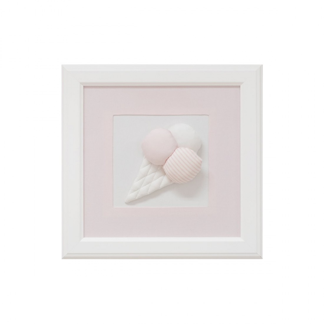 Uma casquinha de sorvete gourmet 3D compõe esta pequena moldura de madeira, que dará o toque final à decoração do quarto da sua princesinha.