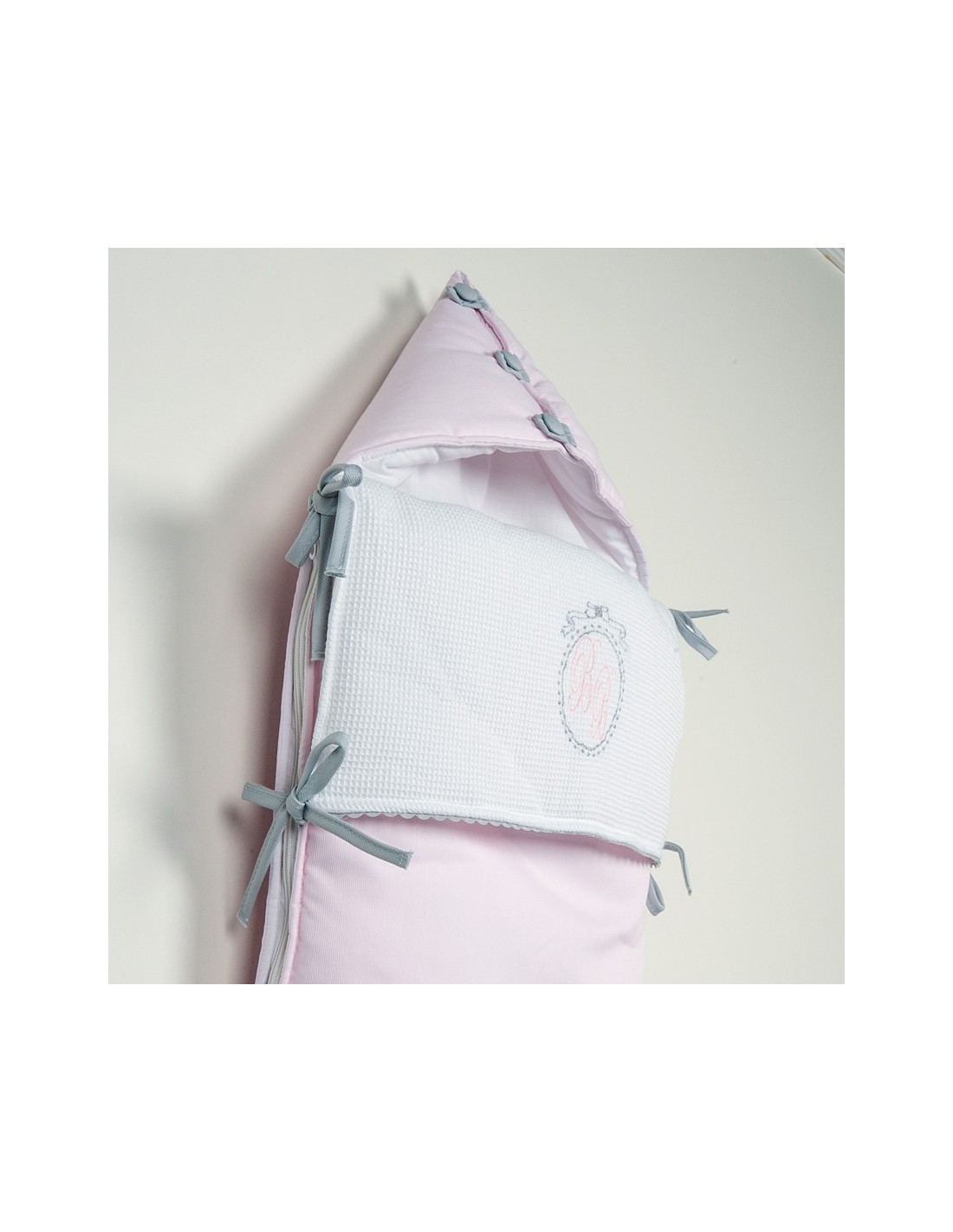 Capa e toalhinha de banho - Médaillon Couture - Cinza pérola, rosa claro e branco