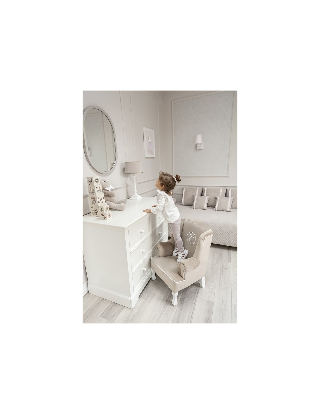 Uma poltrona elegante e estilosa revestida com tecido lavável de alta qualidade em uma cor bege atemporal. Decorado com a exclusiva letra “C”. Lindos móveis clássicos que enriquecem o quarto de cada criança.