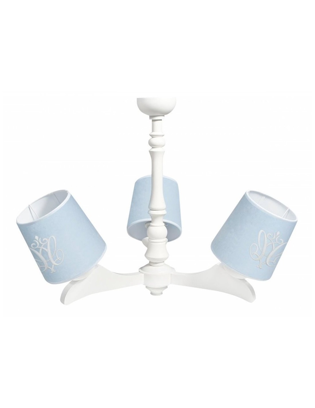 Este lustre será uma excelente fonte de luz principal no interior do bebê. Seus abajures são feitos de veludo macio decorado com um elegante emblema branco. Os nossos lustres são feitos à mão e existem ligações visíveis entre os braços e o elemento principal. Devido ao seu trabalho artesanal, cada lustre é um produto único e pode diferir um do outro.