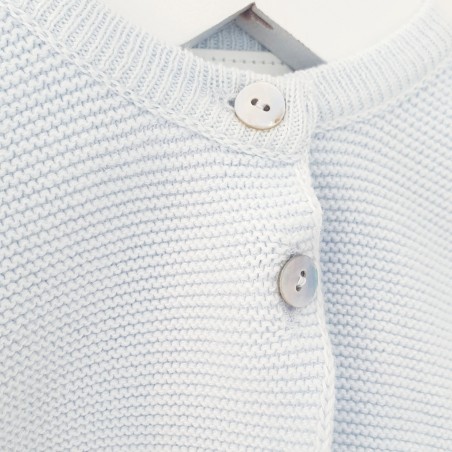 O Cardigan Cocon d'amour manterá o bebê bem coberto, mantendo um estilo elegante específico da marca com botões na frente.