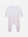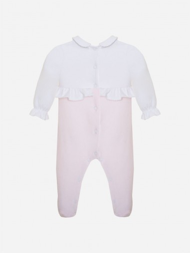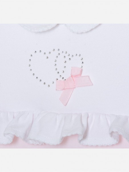 Este macacão super lindo em veludo supermacio branco e rosa claro. Dois corações de strass estão decorados na frente do pijama. Seu pequeno trabalho no volante dá aquele lado chique.