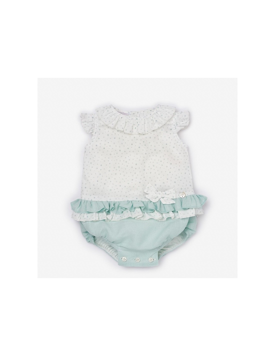 Vestido Culotte Branco e Verde Água